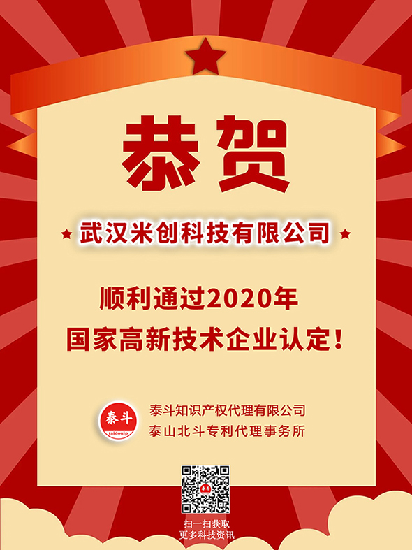 恭賀武漢米創(chuàng)科技有限公司順利通過(guò)2020年國(guó)家高新技術(shù)企業(yè)認(rèn)定!